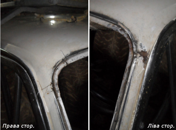 Попередньо демонтували лобове скло, далі інструментом "болгарка" зачищаємо місця тріщин, і перед нами постає така картина: