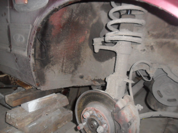 Господар даного автомобіля розповів, що при огляді помітив корозію в правій передній арці. І попрохав нас позбутися її. Ну що ж, це для нас не проблема... Знімаємо колесо, підкрилок, і перед нами постає арка у всій свої "красі":